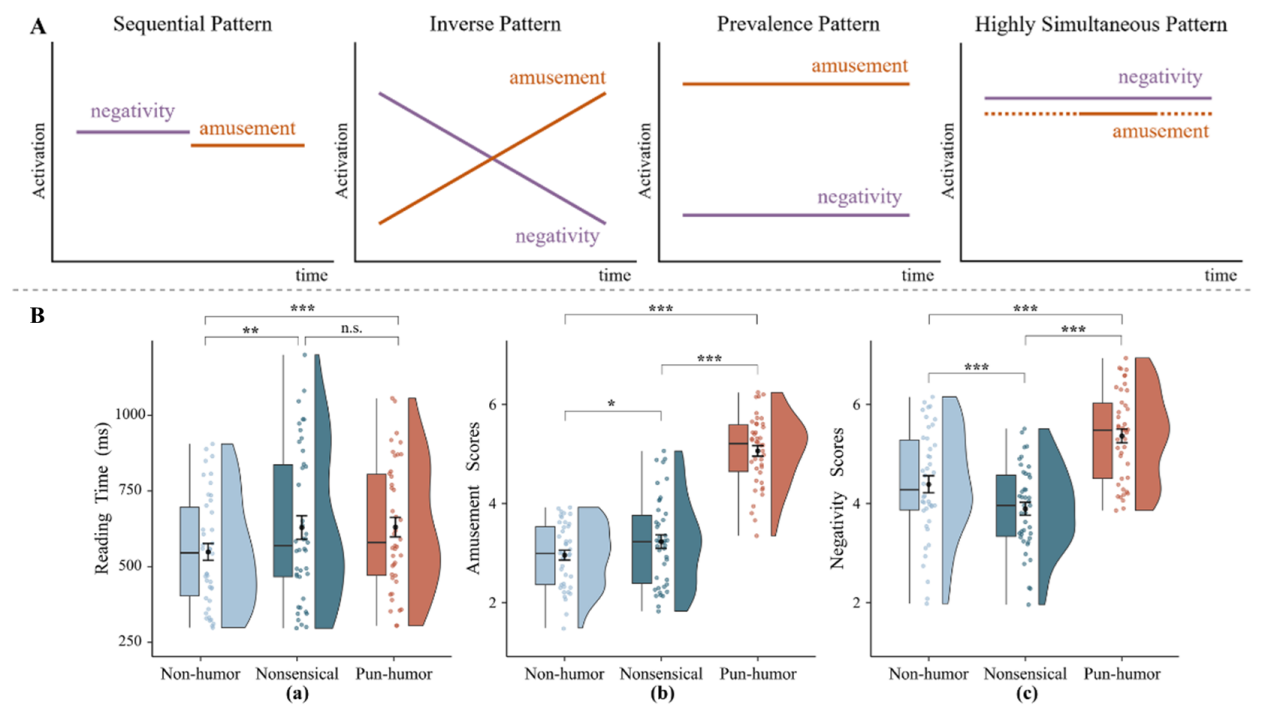 论文信息:Sun, Y., Jiang, Z., Yin, X., Li, X., & Chang, R. (2025). Neural representation of mixed feelings during real-time processing of negative words in pun-humor. Communications Biology, 8(1), 1455. http://doi.org/10.1038/s42003-025-08857-4