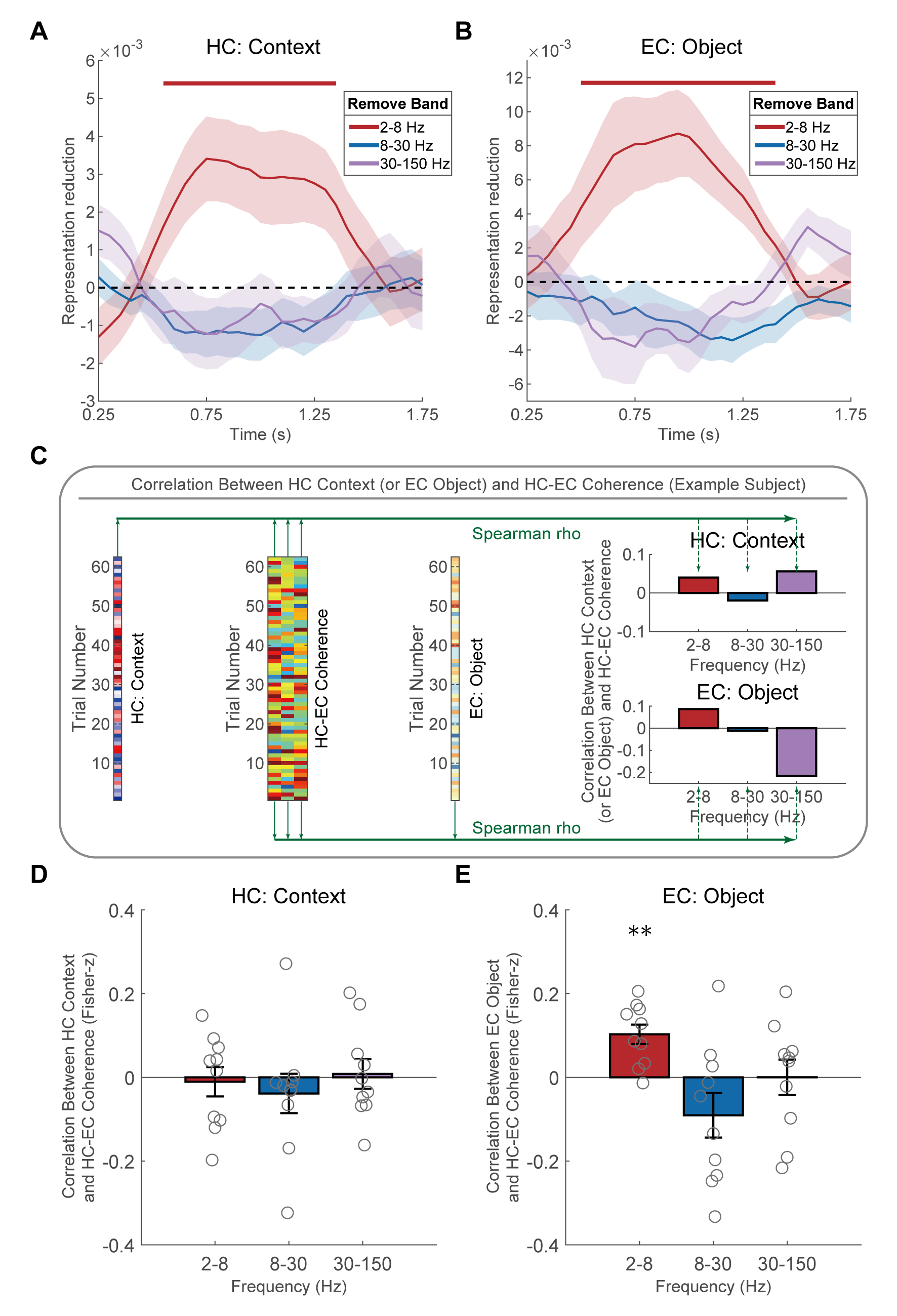 图5. 海马情景和内嗅物体表征的低频依赖性