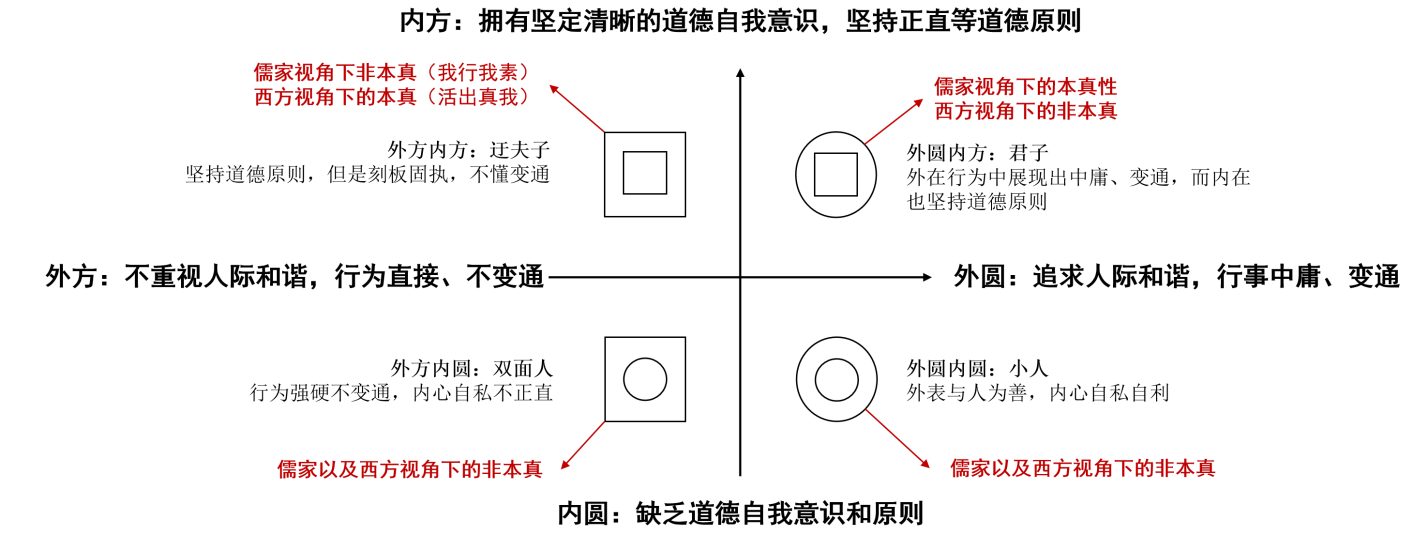 图1. 解析自我真实性内在和外在特征及其个体差异的“外圆内方”框架
